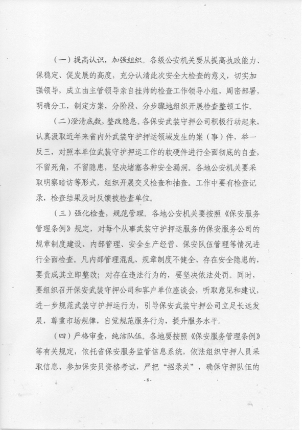 附:關(guān)于開展全省保安武裝守押公司2017年元旦春節(jié)期間安全大檢查工作的通知