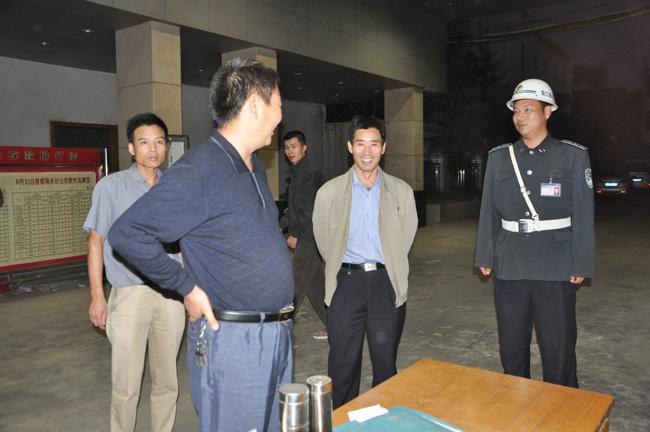在周口市公安局執(zhí)勤崗點(diǎn),公司黨總支書(shū)記鄭明山對(duì)執(zhí)勤的保安隊(duì)員說(shuō),今天是我們傳統(tǒng)的節(jié)日中秋節(jié),是個(gè)親人朋友團(tuán)聚的日子,由于工作的性質(zhì),我們還要堅(jiān)守在自己的崗位,我代表韓國(guó)華總經(jīng)理和公司領(lǐng)導(dǎo)向你們表示感謝,大家辛苦了!值勤隊(duì)員對(duì)公司領(lǐng)導(dǎo)的到來(lái)表示了熱烈的歡迎,對(duì)領(lǐng)導(dǎo)的關(guān)心和體貼表示深深的感謝。