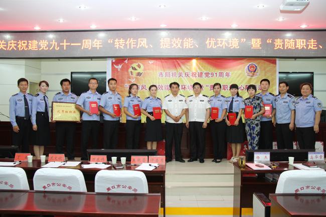 為慶祝中國共產(chǎn)黨成立91周年,深入推進(jìn)市局機(jī)關(guān)“轉(zhuǎn)變作風(fēng)、優(yōu)化環(huán)境”、“責(zé)隨職走、心隨責(zé)走”主題教育活動,6月29日下午,市局機(jī)關(guān)在三樓會議室舉行慶祝建黨91周年“轉(zhuǎn)作風(fēng)、提效能、優(yōu)環(huán)境”暨“責(zé)隨職走、心隨責(zé)走”演講比賽。市局黨委委員、警校校長高華章同志,市局黨委委員、副局長、紀(jì)委書記楊杰同志等領(lǐng)導(dǎo)觀看比賽并為獲獎選手頒獎。