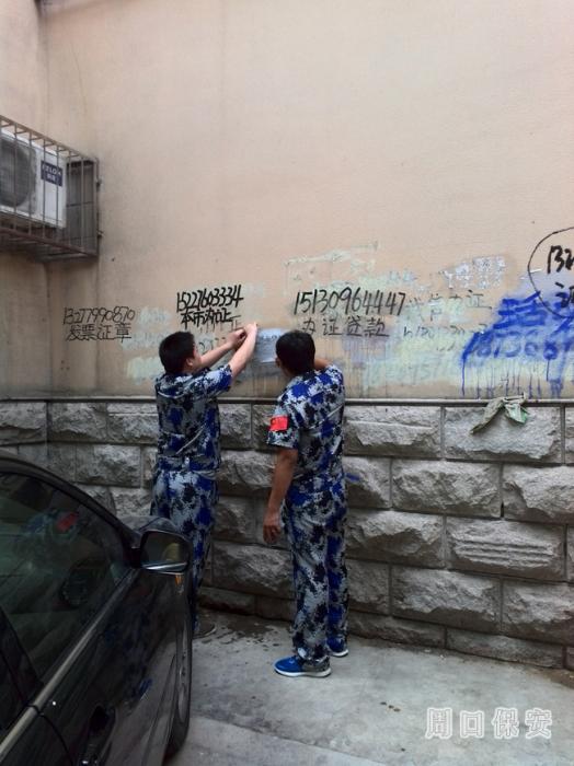 周口市保安服務(wù)按照市公安局《創(chuàng)建省級文明城市工作方案》要求,主動響應(yīng),全體動員,積極發(fā)揮保安隊伍點多、面廣、線長的優(yōu)勢,緊密結(jié)合保安崗位實際,多次走上街頭,維護道路護欄,及時清理和擦拭街邊公共設(shè)施、墻壁、樹木上的小廣告,義務(wù)為我市創(chuàng)建省級文明城市優(yōu)良的自然環(huán)境和平安和諧的治安環(huán)境做出應(yīng)有貢獻。